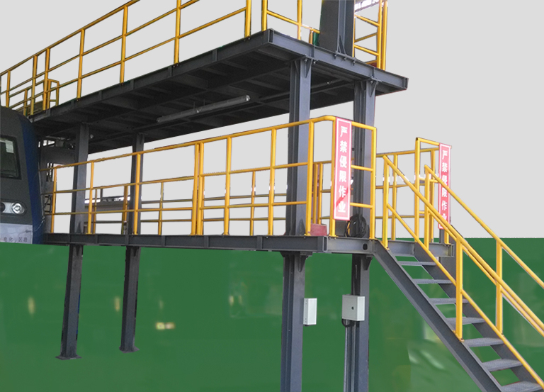 三層整備作業(yè)平臺適用于各型機車檢修整備作業(yè),方便檢修整備作業(yè)人員對機車車上部件的檢查、檢測、清潔保養(yǎng),保證檢修整備人員上下機車的安全。